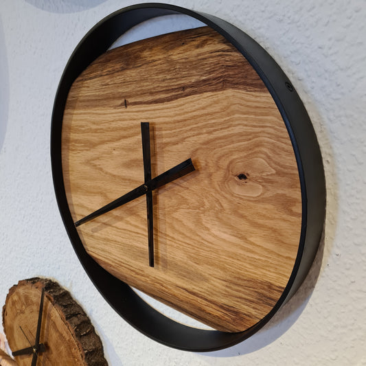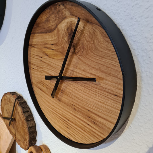 Wanduhr Rund | Eiche | Mittel 50 cm | Uhr aus Holz & Metall